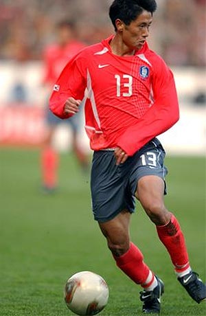 | テクニックは凡庸ですがスタミナに絶対の自信を持ち、左SB、右WG、センターハーフをこなす韓国屈指のユーティリティプレーヤー。激しいプレーとは裏腹に温和な性格です。 00/01シーズンより安養でプロデビューして3年間プレーします。シーズン途中にヒディンク監督の要請に応じPSVにレンタル移籍しました。2003年2月15日ズヴォーレ戦でオランダデビューを飾り、その後安定したプレーを見せて完全移籍を勝ち取りました。 03/04シーズンよりレギュラーに座って開幕から8試合連続フル出場し、チャンピオンズ・リーグとUEFA杯でもそれぞれ5試合とタフネスぶりを発揮します。 3年目のチャンピオンズ・リーグでは14試合に出場して準決勝に進出し、ミラン戦第2レグの後半にコクーのゴールをアシストします。結果的に敗れたものの強豪を追い詰め、ヨーロッパに旋風を巻き起こしました。国内ではアヤックス相手に初ゴールを挙げて勝利に貢献しました。 05/06シーズン開幕後にトッテナムへ移籍し、9月10日リヴァプール戦でプレミアデビュー。1年目は31試合に出場しましたが、新星ベイルの台頭により出場機会が減少しました。 08/09シーズンにドルトムントへ移籍し、9月13日ホームでのルールダービーでブンデスリーガデビューを果たします。2試合目のシュツットガルト戦でアシストを見せるなどスタートは悪くありませんでしたが、シーズンの終盤は控えに甘んじました。 中東へ渡ると22試合に出場して国内2冠を達成し、ACLでも2年連続で出場しました。12シーズンよりMLSに移って3月10日モントリオール戦でリーグデビューし、コロンバス戦では決勝点を挙げるなどベテランながら33試合とタフネスぶりを発揮しました。2年目は新加入の小林大などと共に30試合以上戦いましたが、シーズンいっぱいで引退しました。 1999年6月12日メキシコ戦で代表デビューをきっかけにプロに転向しました。2000年シドニー五輪や翌年のコンフェデ杯でそれぞれ3試合出場とレギュラーを獲得します。 2002年地元開催のW杯では、グループリーグのポルトガル戦でコンディション不良のフィーゴを抑え、パク・チソンの決勝ゴールをアシストします。その後決勝トーナメント1回戦のイタリア戦ではアン・ジョンファンの決勝ゴールを演出し、ベスト4進出に多大な貢献を果たしました。 2006年W杯予選は、GKイ・ウンジェに次いで11試合プレーし、2大会連続出場。本大会ではグループリーグ敗退になりましたが、持ち味を発揮して全3試合に出場しました。 2010年W杯予選では10試合戦い、2008年11月19日サウジアラビア戦では韓国7人目の100キャップを記録。3大会連続で権利を得た本大会でも全4試合にフル出場しました。 2011年アジア杯でも6試合先発しますが、準決勝で日本に敗れました。 代表記録 128試合5得点 2007年2月12日:新規アップ 2017年6月18日更新 |