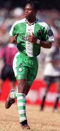 | 身体能力を生かしたマンマークと激しいタックル、タイミングの良い攻撃参加が持ち味のCB。所属するチームカラーのリボンを髪の毛に織り込むヘアスタイルで人目を引きます。 プロデビューは91/92シーズンのシャークスですが、才能を開花させたのはフランスに渡ってからでした。所属したオセールでは2度のリーグ優勝を果たしました。 97/98シーズンにインテルに引き抜かれると、ベルゴミやサネッティなどと共に堅守を築きます。2位に終わりますが、リーグ優勝したユヴェントスより少ない27失点でシーズンを終え、UEFA杯も獲得。しかし翌シーズンは監督交代がありチームが安定せず、8位に終わりました。 99/00シーズンはライバルのミランに移籍しますが定位置を確保できずに終わります。その後はイングランドへレンタルされたり、無所属状態が続いたりするなど不安定な状況が続き、02/03シーズンから所属したパルチザンでも、マテウス監督の信頼を得られませんでした。 以降はカタール、イングランドなどチームが頻繁に変わる状況となり、07/08シーズンを最後に現役生活を終えています。 1993年のU−20アフリカ選手権を経て、1994年5月5日スウェーデン戦でフル代表デビューします。その後1996年のアトランタ五輪のメンバーに入って全6試合に出場。ブラジルのロナウドや、アルゼンチンのクレスポなどに仕事をさせず優勝に貢献しました。 1998年W杯予選で5試合、本戦も4試合とDF陣の中軸として出場し、決勝トーナメント進出を果たしました。その後2度のアフリカ選手権でもベスト4以上の結果を残しました。 2002年W杯予選でもDF陣最多の6試合に出場して2大会連続出場を決めると、本大会開催時は無所属ながらメンバーに入り、2試合ピッチに立っています。 代表記録 41試合 2007年11月12日:新規アップ 2017年6月30日更新 |